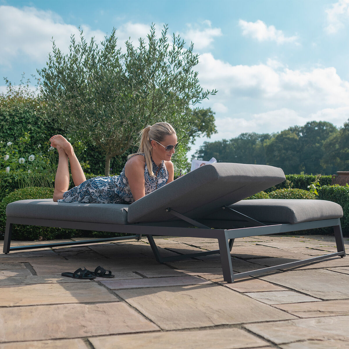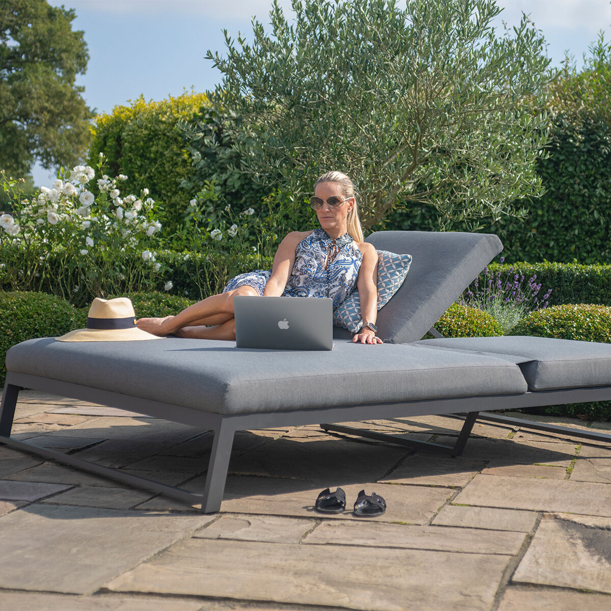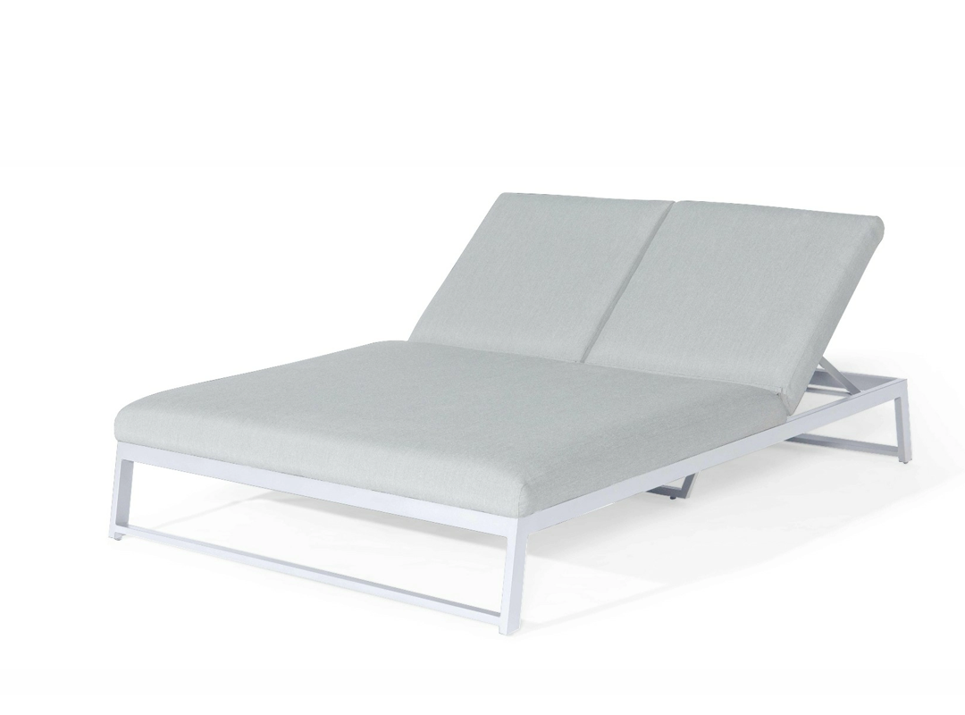 Dit elegante all weather ligbed is voorzien van twee verstelbare delen, waardoor u het naar wens kunt aanpassen. Of u nu rechtop wilt zitten, of languit wilt ontspannen in de zon, mogelijkheden zijn eindeloos. Beide ligvlakken hebben afzonderlijk verstelbare hoofdeinden, waardoor u en uw partner optimaal van de zon kunnen genieten op hun eigen manier. Met de optionele aluminium bijzettafel heeft u voldoende ruimte om een kop koffie of een drankje binnen handbereik te houden. Gemak en comfort staan centraal bij het All weather tweepersoons ligbed Allure Grijs.