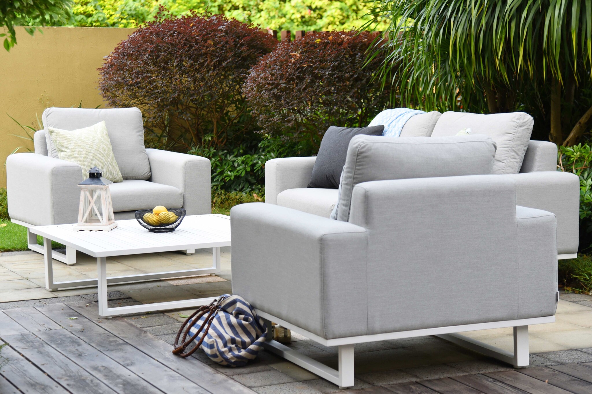 Materiaal: | Hoogwaardig gepoedercoat aluminium onderstel, zeer comfortabele zitting gevuld met Quick dry foam en hoogwaardige outdoor stof - de hoogste kwaliteit in buitenstof - het is kleurvast, voelt zacht aan, water en vuil afstotend |